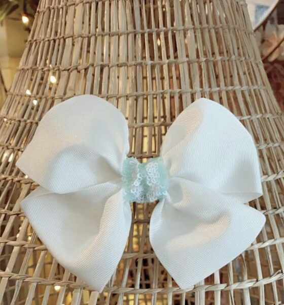 Coletero lazo blanco con detalle bicolor de lentejuelas